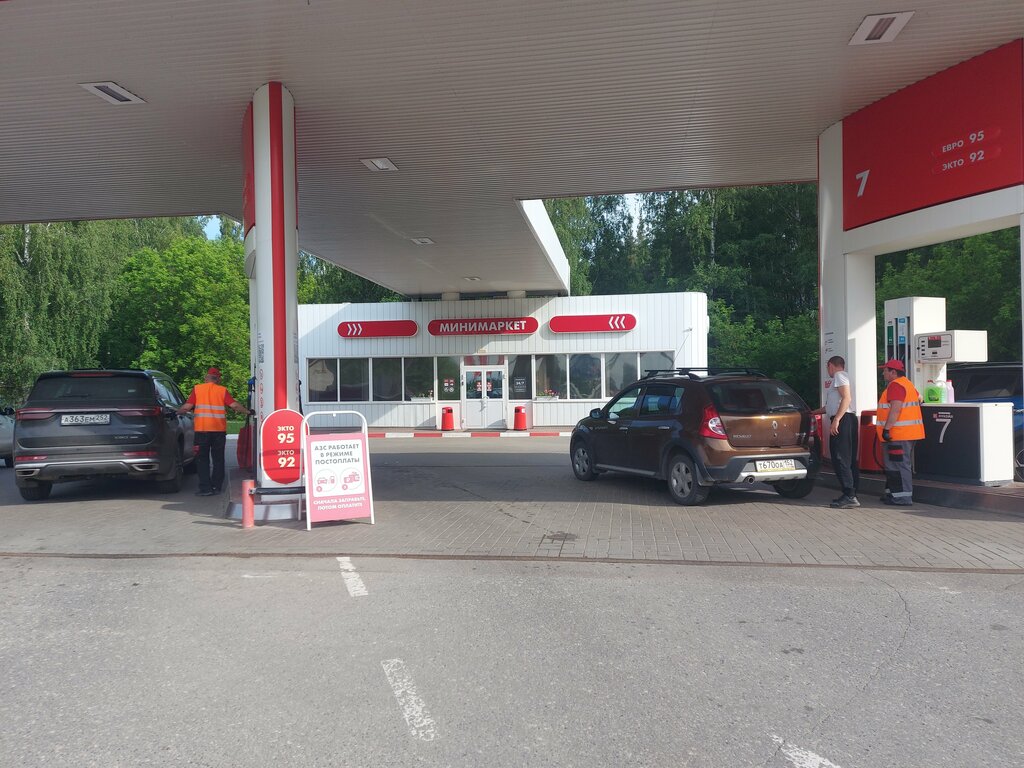 Часто сюда заезжаю. Удобное расположение для тех, кто выезжает из города, например, на дачу. В большие очереди не попадал. Заправщики, как правило, есть, вежливо помогают. Девушки на кассе вежливые. К качеству бензина претензий нет.