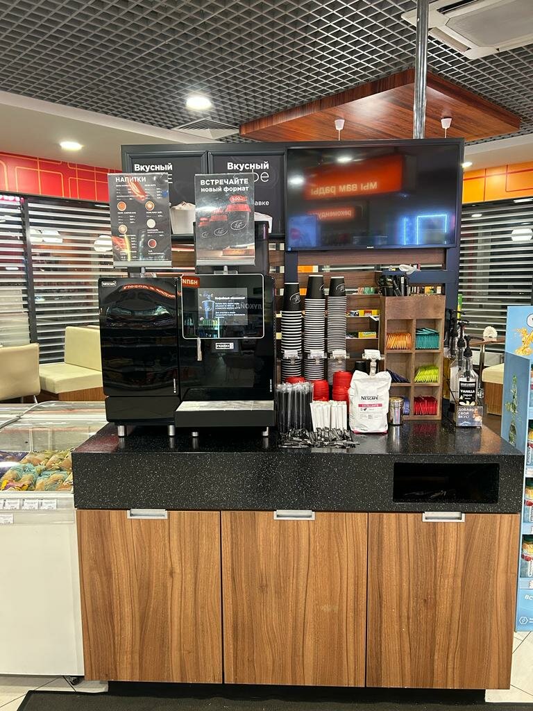 Заправляюсь в основном в Лукойле, все хороши, а последнее место заправки понравилось более всего. К сожалению не запомнил адрес, а вид у всех одинаковый. Та заправка, которую я не могу идентифицировать удивила своим внутренним удобством и продуманностью размещения витрин, столиков и маршрутов для подхода к кассам, низкие прилавки смотрятся лучше и более привлекательные.