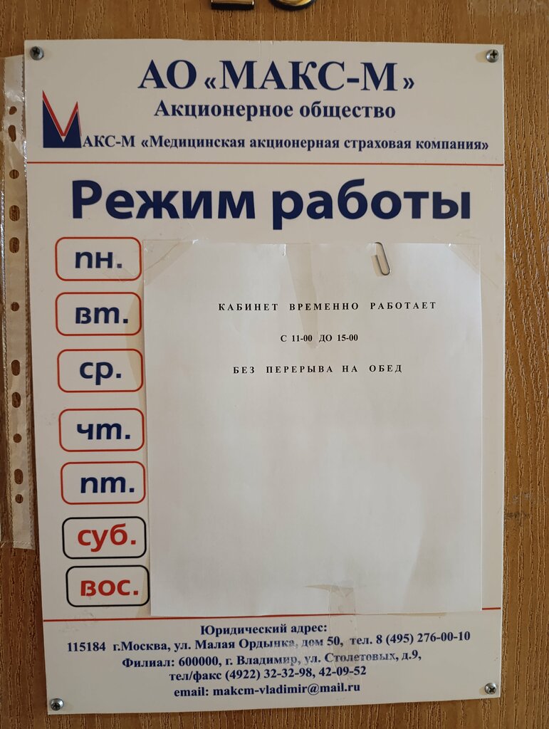 2 дня хожу, не могу попасть, сотрудника не бывает на месте. Самовольно установлен график работы с 10 до 15, несмотря на то, что везде указано рабочее время с 8 до 17. Постоянно висит записка на двери