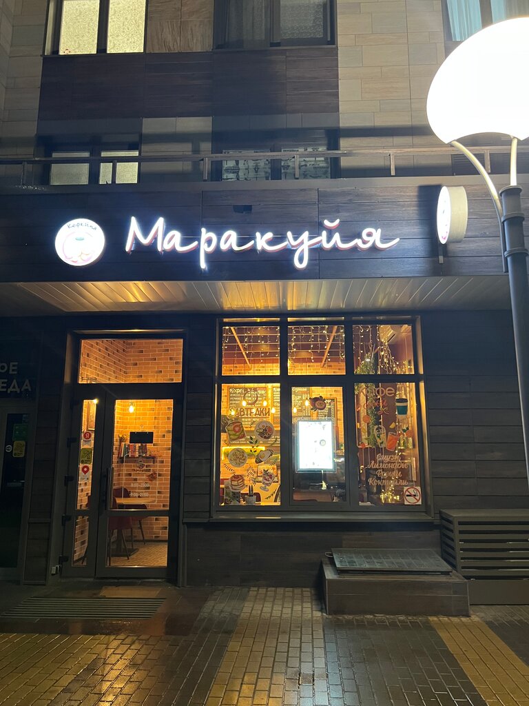 Маракуйя - не просто кофейня, а уютное место с полноценной кухней, здесь очень разнообразное меню, незабываемые десерты и великолепные гонконгские вафли, за которыми хочется возвращаться снова и снова. Кофе просто идеальный. Это место, куда приятно приходить на завтрак, обед и ужин.