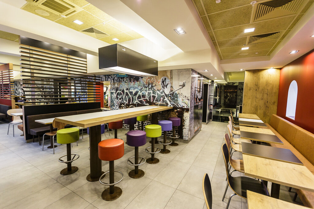 Самый ужасный Макдональдс в котором я бывал. Мужской туалет это вершина минимализма, выходишь из кабинки и упирается в человека у писуара. Со столов убирать не успевают. Попытался заказать через приложение по номеру приклеенному на столе, так в самом конце, при оплате, оказалась, что в данном Макдональдсе данная услуга не работает. Ну и вишенка на торте это огромное колличество работников зелёной службы доставки, которые толпятся на выдаче, как будто у кормушки. Конечно сотрудники мака пару раз пытались их отогнать, но как то это было вяло и не убедительно.