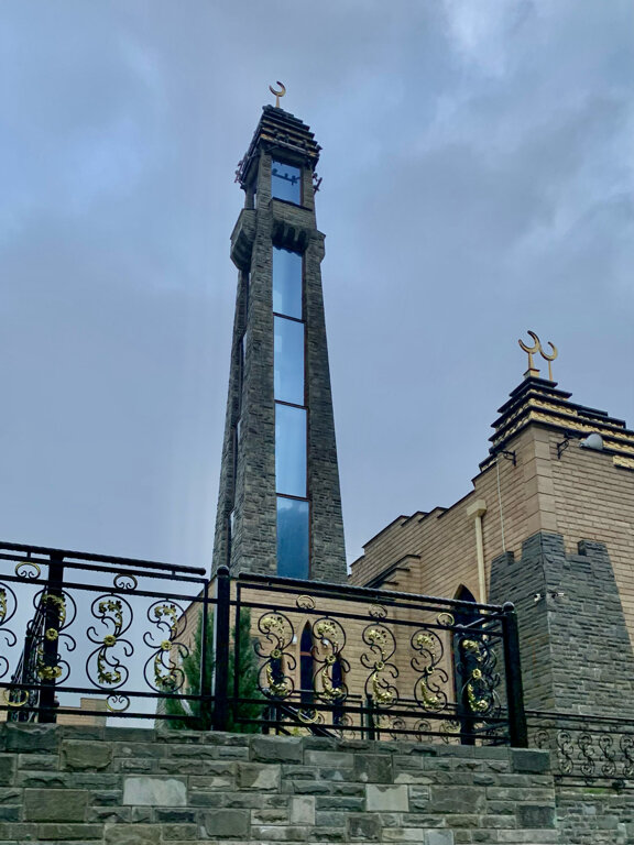 Современная мечеть необычной архитектуры. Купол мечети ступенчатый, а минарет по форме напоминает традиционные ингушские родовые башни. Смотрится очень красиво, но восприятию мешает высокая башня ЛЭП рядом.