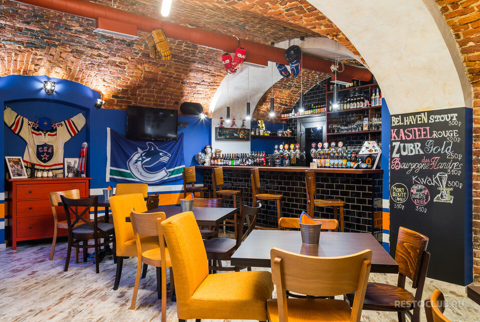 шикарное место с потрясными барменами пивом и едой. на фото свет в баре кстати вообще не так, там реально очень приятно и сумрачно. мужикидля вас на здоровенных телеках трансляции. если решили отвиснуть и насладиться хоккеем никто не будет вам мешать. бармены очень крутые
