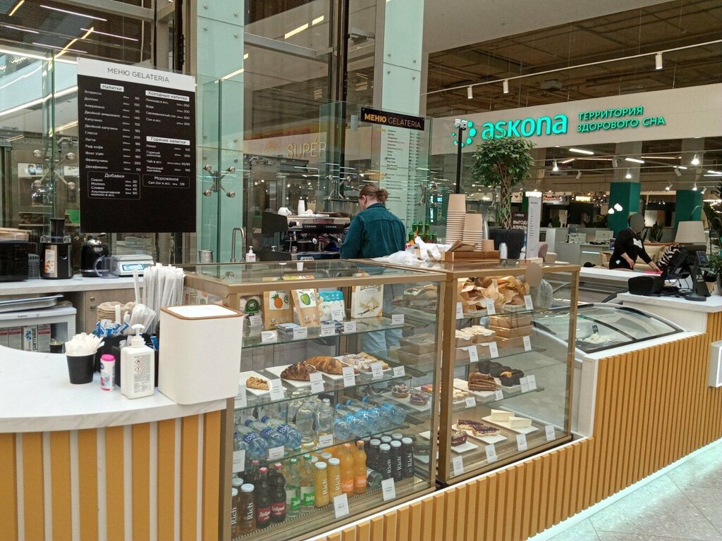 Кофе прекрасен, цезарь ролл и лосось ролл вкусные. Девушка за баром готовит все быстро. Вежливая. Стулья и столы удобные.