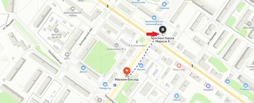Магазин ВосходТЦ НордКингисепп – Площадь НиколаеваМясная лавкаДетский сад