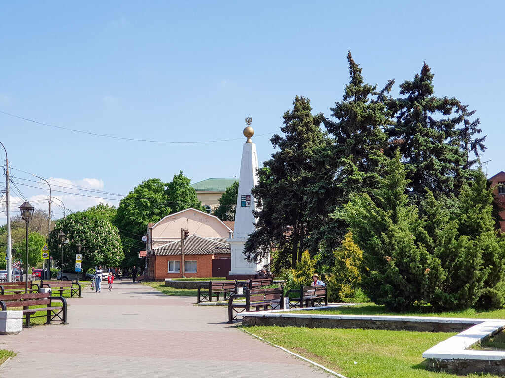 Символ Таганрога царской России. Снесен и установлен заново в стороне от дороги. Сквер нуждается в ремонте и благоустройстве. Много не подстриженных деревьев создают неряшливость.