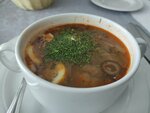 Great view from the panoramic windows. A classic elegant restaurant with tablecloths and beautiful furniture. We were at lunch, ordered a business lunch. The prices are adequate. Pickle (6) is good (rib meat is delicious) , mashed potatoes (6)+ steak(14) , cabbage, bread(0.3). Nesvizh salad. But the music is loud and always fits into the concept (Eminem, Houston)