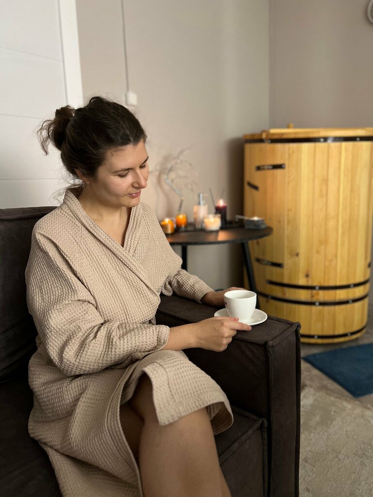 Хороший новый чистый салон. Была на бочке и на массаже у Юли. Бочка мне понравилась тут. Я была ещё в нескольких местах на бочке, есть с чем сравнить. Греет равномерно, пахнет деревом приятно, чувствуется, что новенькая. Юля тонко чувствует тело, зажимы, уместно регулирует прикладываемую силу. Помогла мне расслабиться и почувствовать себя лучше после тяжёлого рабочего дня. Сервис тоже понравился: и чаем напоили и все необходимое дали: полотенца, тапочки, шапочки, даже халат. В салоне поддерживается вежливое общение и радушная атмосфера.
