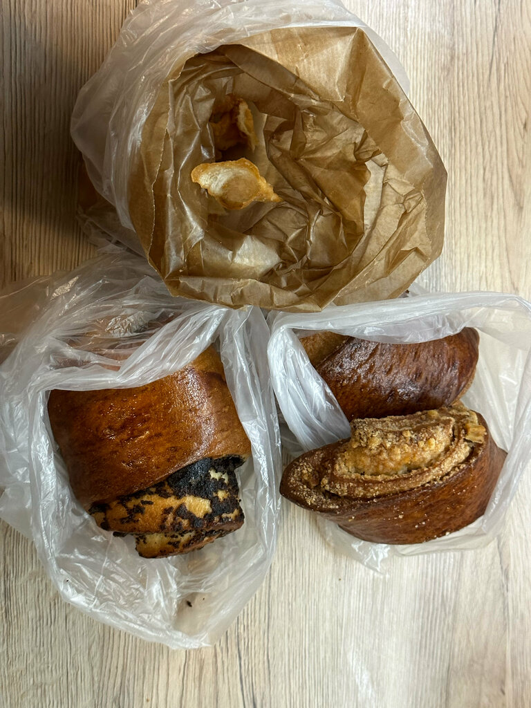 Если Вы хотите купить вчерашние , а может позавчерашние булочки, то Вам сюда. Вам их продадут, как только что вынутые из печи, но по факту это будет не свежая выпечка. Купили две самсы с говядиной, хворост, булочки Гата, пирожок с вишней, булочка с маком. Все не свежее, а от самсы у тех кто её ел было расстройство. Не советую посещать данное заведение, а тем более что то из него есть.
