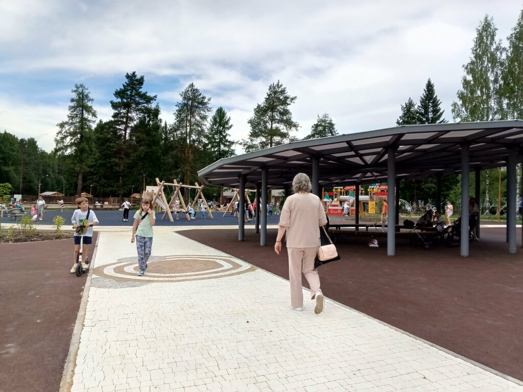 Площадка, новая спасибо мэрии, но много мусора его никто не убирает. Большой батут с веревками - гайки не имеют фиксации, от качения выкручиваются,некоторые уже утеряны. Старый городок,перенесенный ближе к кинотеатру "Планета" , какие-то винты уже сгнили, горка-труба поломан элемент трубы.