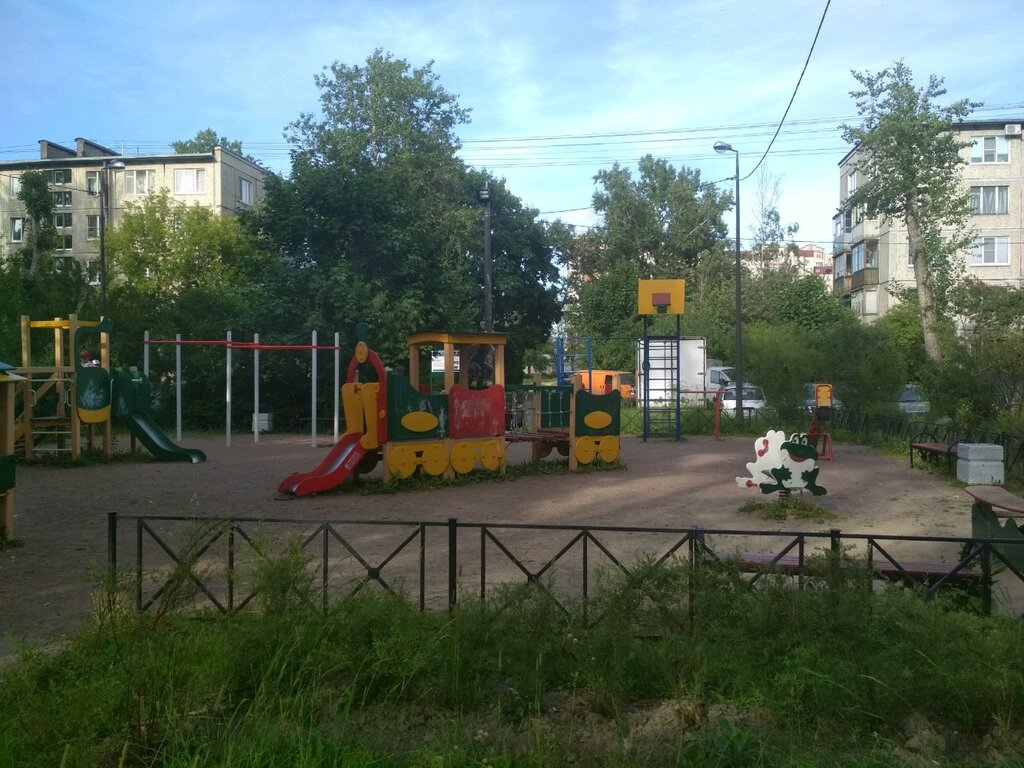 Расположение удачное. И выбор развлечений достаточный. Как и детям от малого до большого. Так и "турникменам". Единственный минус: контингент ночных посетителей.!!! На утро все в мусоре, всю ночь "откровенные" громкие и нетрезвые разговоры. Удивляет то, что они ещё и с детьми приходят в столь поздний час...хотя наверное этому есть объяснение - площадка то ДЕТСКАЯ