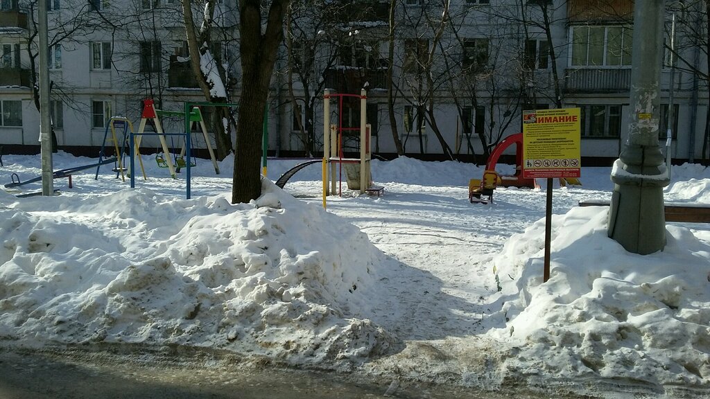 Жуткая детская площадка, элементы старые, покрытие отсутствует, небольшой дождь - сразу огромная лужа на всю площадку, глубиной 20 см-30см., т.к. площадка в низине находится, а детей в доме ооооочень много! Но т.к.дом стоит в очереди по реновации, то, не видать детям нормального детства ((( т.к.и переезд неизвестно когда и площадка новая "не светит".