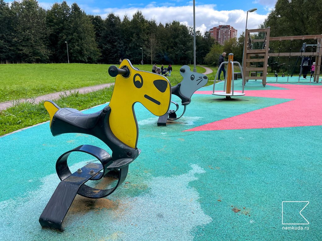 Лучшая малышковая площадка! Безопасная, необычная, приятная цветовая палитра, хорошее покрытие всей площадки. Очень приятно гулять там. Большая песочница, внутри и по бокам есть небольшие интерактивки для детей. Я осталась в восторге от горки!!! Горка рассчитана как на малышей, так и на деток постарше, но самое интересное, что залезают все с одних ступенек, а вот забраться на более высокую горку малышам уже не под силу, зато очень интересно будет проползти в прозрачном тунеле !) Отличное решение! Остальные лазелки тоже оценила :))) Однако 4 звёзды. За что? 1. НЕТ МУСОРНЫХ КОНТЕЙНЕРОВ. Я очень надеюсь, что ситуацию исправили, но когда мы регулярно гуляли летом с дочкой, банально негде было фантик выбросить. Это ж чему учить детей?) 2. НЕТ СКАМЕЕК. Вещь необходимая :)) тем более что площадь позволяет. 3. МАЛО КАЧЕЛЕЙ. Ну правда) места там много, детей много, на малышковые качели постоянно очереди, малыши со слезами слезают, т к качаются недолго, ведь остальным тоже нужно) очень надеюсь, что эту ситуацию исправят, качели любимый атрибут всех детей :))) А так молодцы! Чисто, красиво, удобно, безопасно!