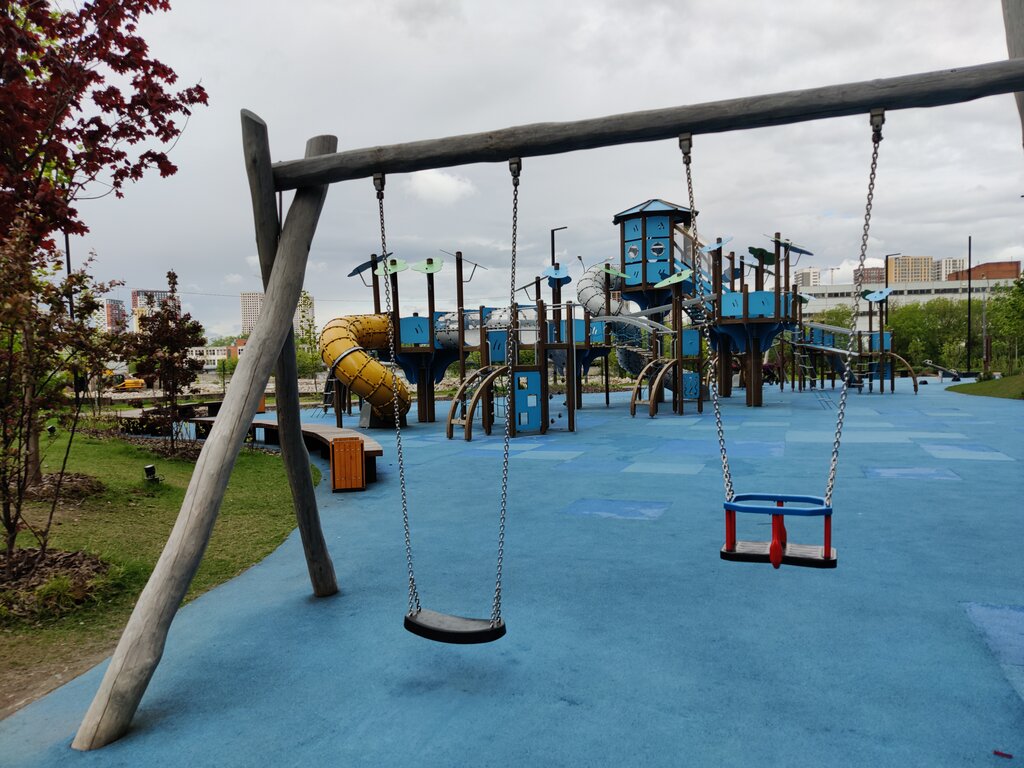 Новая площадка, довольно сложная. Для малышей рановато гулять по таким ( были тут с дочкой 2 года) , для деток постарше вполне подойдет.