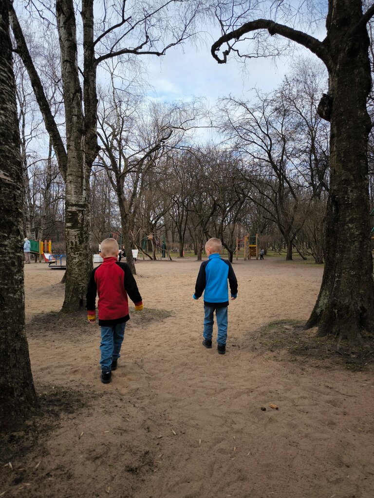 Площадка небольшая, не старенькая, но ухоженная, находиться там приятно, но долго особенно там делать нечего. Парк чудесные, безусловно, обожаю его