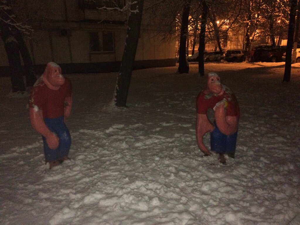 Две бетонные обезьяны самые лучшие друзья, встречают меня каждый вечер уже треть века! Самая колоритная площадка на Новинках