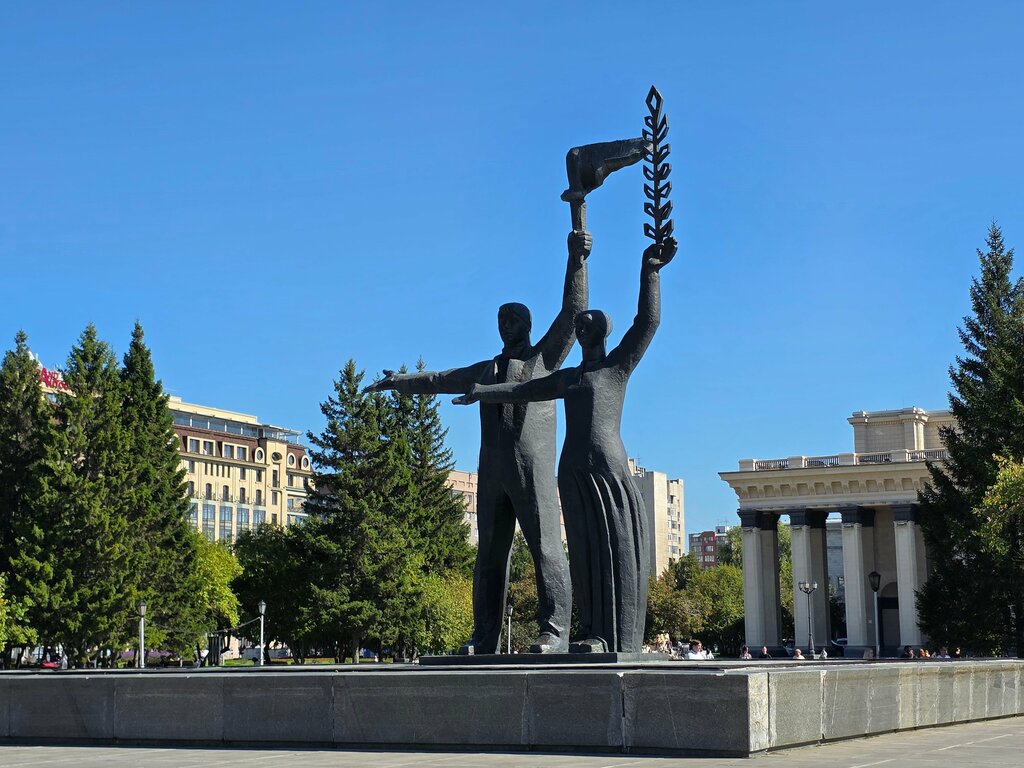 📅 Открыт 5 ноября 1970 года, приурочен сразу к двум важным датам: 53 года со дня Великой Октябрьской революции и 100 лет со дня рождения В. И. Ленина. 📍 Установлен строго по оси симметрии Оперного театра, на замыкании улицы Ленина. 🔧 Бронзовая фигура вождя весит 10 тонн! А вся композиция — 6,5 метров в высоту, на отполированном гранитном пьедестале. 🧱 Справа — рабочий, солдат и крестьянин, символизирующие опору революции, а слева — юноша с факелом и девушка с колосьями 🌾 — передача знаний, сил и духа следующим поколениям. 💡 Интересный факт: изваяние Ленина было сделано в двух экземплярах — на случай брака. Но оба оказались безупречными, и один уехал в Снежинск (да-да, у него есть брат-близнец! 😄).