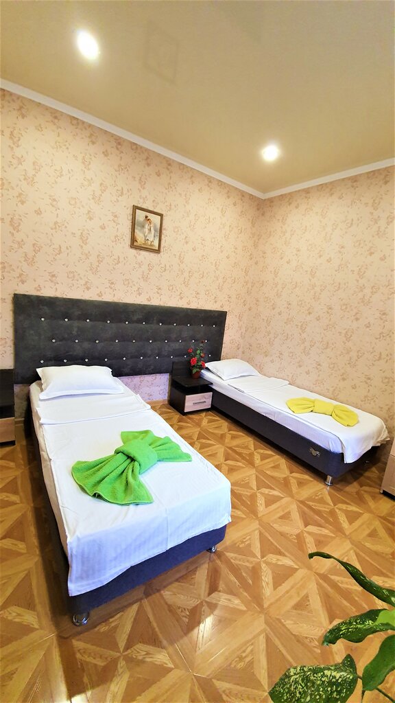 Это не гостиница, а домик в частном секторе с отдельными комнатами с разными удобствами. Я снимала комфорт с собственным санузлом и душем. Из плюсов: -расположение по отношению к достопримечательностям -удобная кровать -чистое постельное -чистый унитаз Минусы: -никто не позвонил, не сообщил особенностей заселения, так как администратора на месте нет. Не с первого раза дозвонилась до хозяина, который дал номер администратора, только тогда узнала код от забора, номер комнаты и как туда попасть -двор не ухоженный -в ванной были муравьи, на мою просьбу что-то с этим сделать никто так и не пришел -порванные плохие полотенца -в ванной отваливается плинтус потолочный, не заделаны дыры - на общей кухне нет заявленной микроволновки - никакого обещанного сейфа в номере нет -уборка явно не ежедневная На два дня сойдет, но на дольше я бы не остановилась...