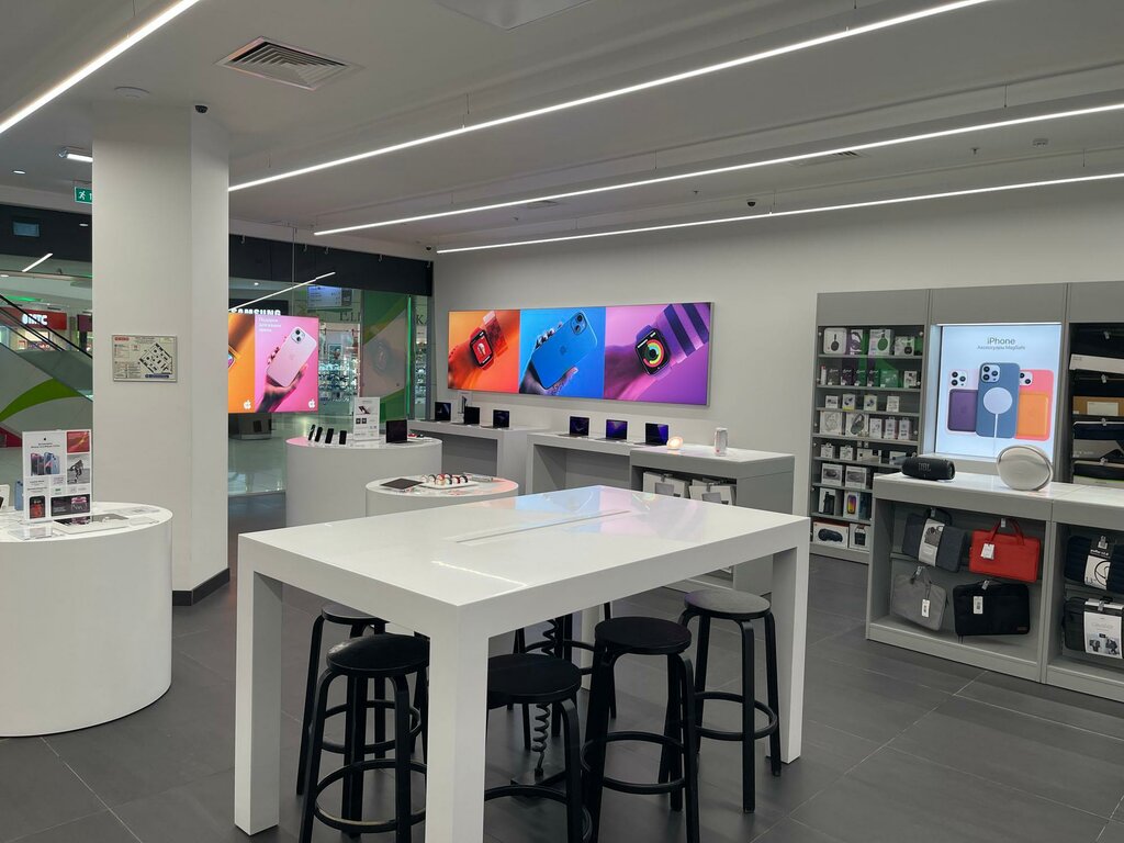 Минусов нет. Плюсы: Чистый магазин, ни одной пылинки и грязи. Много очень разных аксессуаров и гаджетов. Всё объяснят, и подскажут с покупкой гаджетов. 15.10.2023 года, брали брату Apple IPhone 14, на 256 Гб, в цвете тёмная ночь. Брат хотел 13 Pro MAX, в голубом цвете, но не было в наличии. Пришлось брать 14-й. Два года пользуется телефоном, и радуется. Очень рад, что появился новый телефон. До этого у него был SE 1-ого поколения. Был старый, и глючил уже, пришлось брать новый телефон. По счёту у него, уже второй Айфон. Сразу подобрали, и помогли с выбором телефона. Консультантка-молодец! Ей благодарность, за выбор телефона. Лайк за это. Пять звёзд, за заведение.