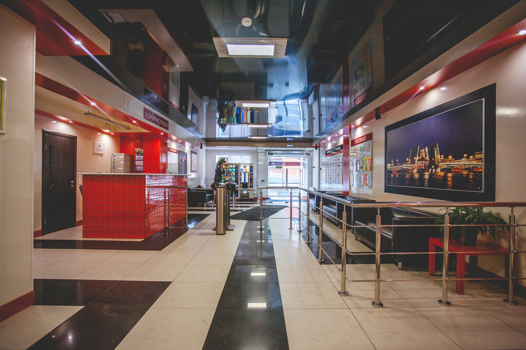 Внутри по интерьеру скудно, сан.узлы нечто , казалось бы Петроградка.. На первом этаже есть замечательное кафе, цены обычные, как везде, разнообразный выбор и на удивление вкусно. Есть бизнес-ланч. Есть скидки 50% 🔥 Стал большой выбор десертов, что очень радует. Вежливое и трепетное обслуживание, в зале всегда чисто.