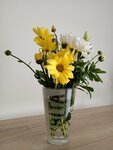 Первое)) смогли припарковаться рядом с магазином)) нам нужны были гвоздики , их немного было в вазе. Продавец очень аккуратно собирала композицию цветов для букета и немного осталось не востребованных цветочков) на мою просьбу: а разрешите мне немного взять этих остатков , мини букетик для настроения, она мило согласилась) фото прилагаю)) рекомендую))