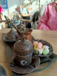 Вечером 10 ноября 2025 года решили с девушкой после прогулки зайти в уютное кафе и посидеть в приятном месте. Узкая Ялтинская улочка привела нас в это неприметное, но очень классное место. Братцы, не представляете,как там здорово! Зал небольшой, буквально на 5 или 6 столиков, но всё оформлено в традиционном национальном колорите, играет очень приятная музыка, эти люстры расшитые по особому дизайну Кухня! Кухня это отдельное слово. Мы заказали суп из красной чечевицы, пиле, янтык и чайную церемонию с десертом. Всё очень понравилось,