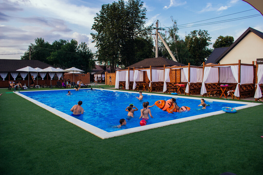 Были на втором дне свадьбы в этом месте, молодожены сняли большую беседку, нас очень много было человек 70 запихнули))) сплит работал отлично! Место для диджея и ведущего есть, в холодильник правда не все влезло на такую компанию. Территория большая и много зелени, очень красиво. Две раздельные зоны с бассейнами, на любой вкус, много закрытых и открытых беседок. Единственное цена на человека за бассейн 2000, скидки за снятую беседку нам не было, но мы и не ходили в него, было весело без бассейна.