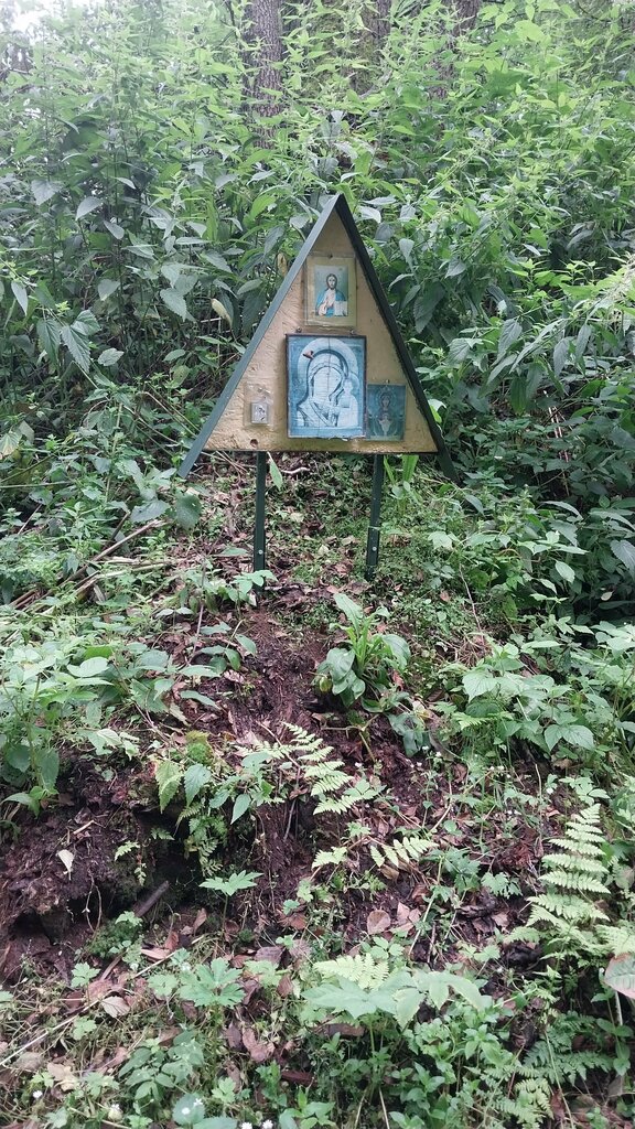 Родник течёт из склона. Иконы. Не удобно набирать бутыль 19л. Вода вкусная
