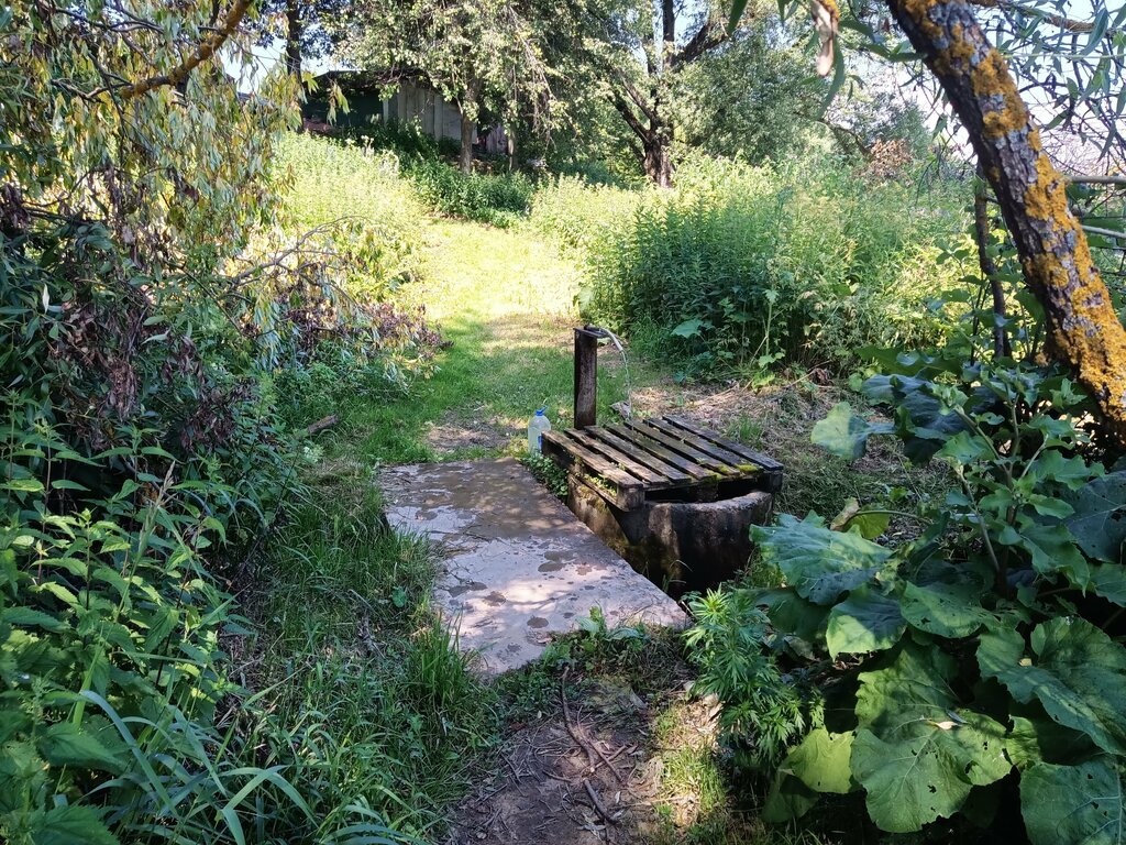 Родник из-под гаражей, но сильный, как из колонки. Очень удобно умываться. Хороший подъезд, но тропа довольно крутая.