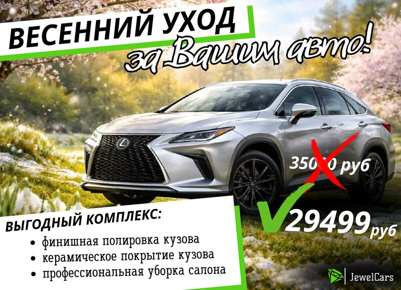 🌸 Весенний уход за вашим авто от Детейлинг Центра Jewelcars 🌸 Весна — лучшее время, чтобы освежить внешний вид и комфорт вашего автомобил...