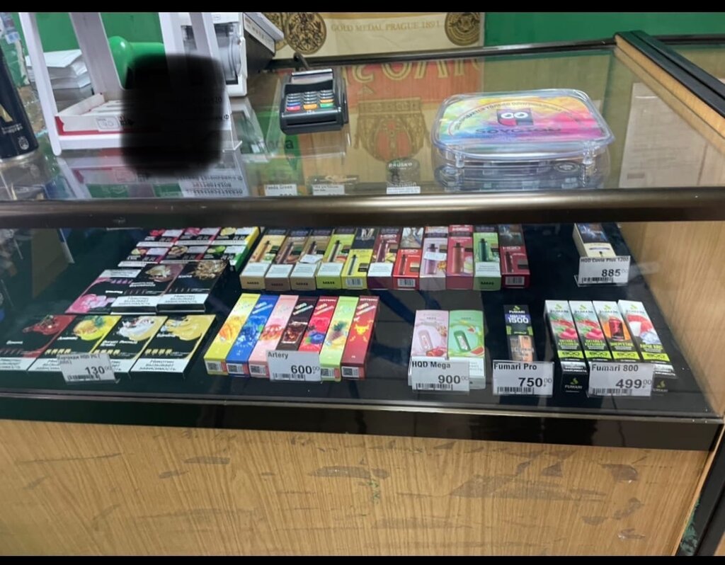 Хорошая табачка, большой выбор жиж, одноразок и сигарет. Можно заказать то, что нужно