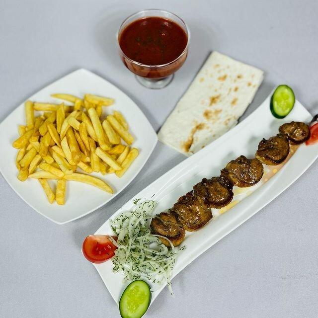 Интерьер на 4, но кухня хорошая. Брали мясной микс "жар-птица" и роллы. Все очень вкусное. Шашлык из утки потрясающий
