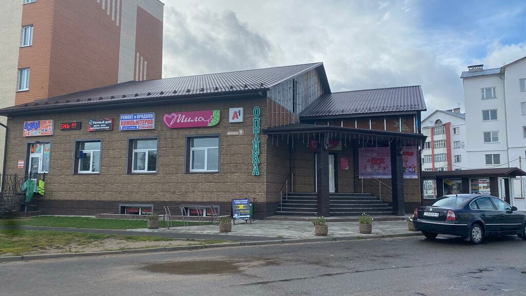 There is an optics store in the basement, you can take an urgent photo, there is a Sleep Kingdom store. There is a Mila store on the ground floor. It is not equipped with ramps, so a person in a wheelchair will not be able to visit it.