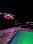 Хорошее место. Сногсшибательные виды в светлое время суток. Адекватная цена. Чисто. Есть тапочки, полотенца, пледы, чай, посуда. Бассейн чистый. Вода достаточно комфортная. Бронировали по телефону. Что омрачило. В смой бане пол очень холодный и тянет по ногам. Что-то, где-то не доделали. Хозяевам на это надо обратить внимание.