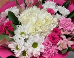 Букет с ароматной гортензией, розой, диантусом и альстромерией