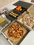 Заказывали роллы, есть можно, но не очень прям вкусно. Но зато пицца, брали три вида: пеперони, Тихая охота и с цыпленком. Просто супер!! Пиццу заказываем теперь только здесь! Одна из самых вкусных, сочная, начинки не много не мало, прям в меру! И очень понравились гренки, тоже уже второй раз заказываем!