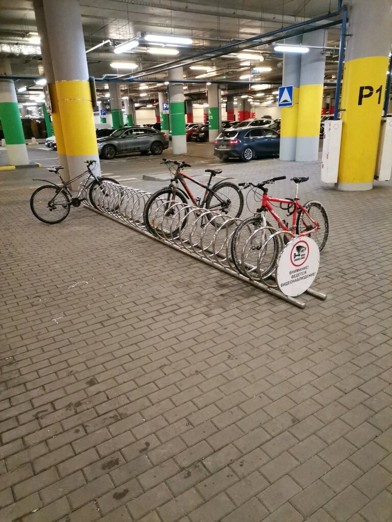 Удобное расположение на парковке возле входа в торговый центр. То, что нужно для посетителей, приехавших на двухколесном транспорте.
