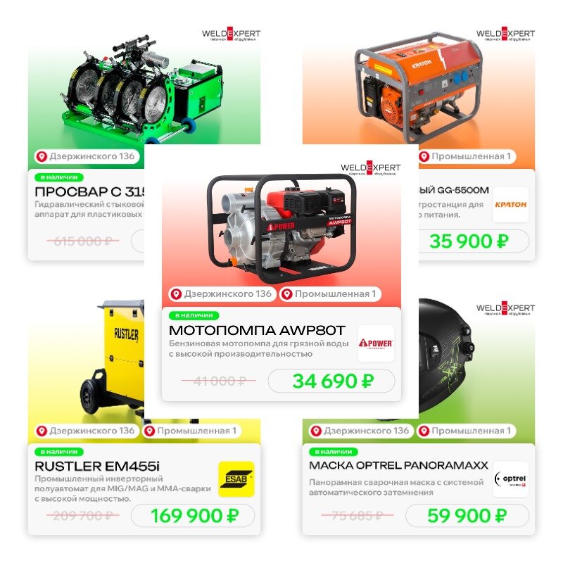 Есть всё для сварки. Нашли себе маску, аргонник и даже специальные присадки для сварки чугуна. Ценники ниже, чем в строительных магазинах. Много что есть в наличии. Рекомендую.