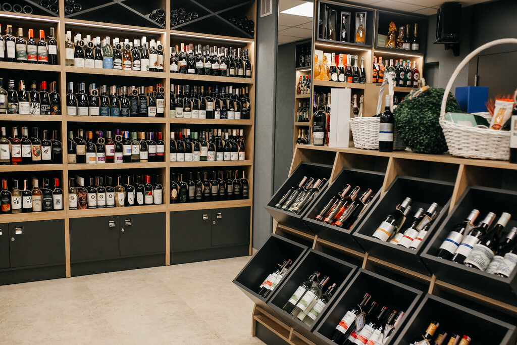 A large selection of alcohol at reasonable prices (approximately like in a hypermarket). In addition to wine, there is also cognac, whiskey, rum, etc. A large selection of snacks, including meat, cheeses, sauces, jams, olives, etc. There are glasses on sale. When buying, the bottle is decorated with a grid. The consultant was very competent and helped with the selection.