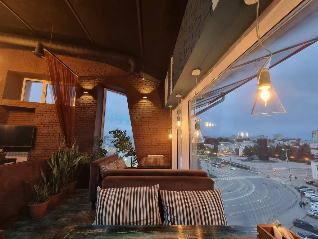 Отличное место для отдыха с хорошей кухней. Благодаря своему расположению на 5 этаде открывается красивый вид на аптечный переулок. Само место сделано в приятном сочетании мятного с белым. Отдельный плюс это великие люди с мордами котов, которые висят на стенах данного места.