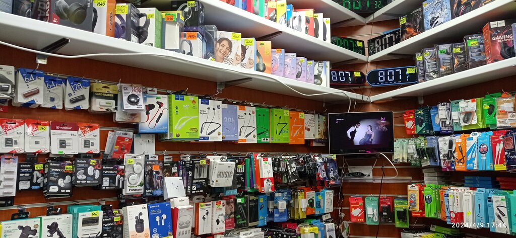 Магазин открылся недавно, но здесь буквально тысячи мелочей для хозяйства: лампы, часы, электрика, колонки, карты памяти, наушники, мыши разные, батарейки.
