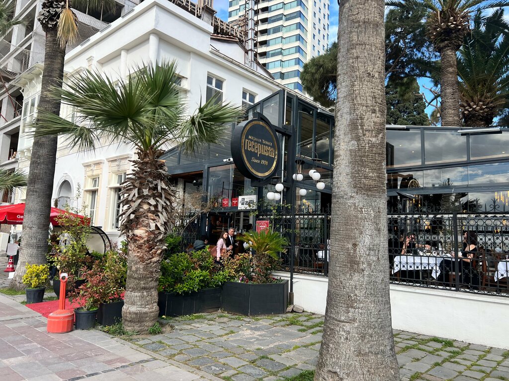 A great place in a pleasant location on the waterfront, which allows you to comfortably sit on a small outdoor terrace overlooking the sea. But it's no worse inside. The cuisine is national, with an emphasis on meat. The menu is large and varied, the problem is not to find something interesting, but to choose from all the above monotony)) They cook just fine, everything is very tasty! A separate advantage is the complementary set of snacks served before the main order. The service is basic, but operational, and there are no complaints about it. Being in Izmir, this place is definitely worth a visit.