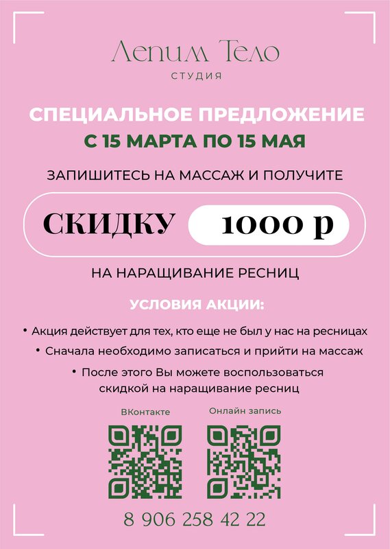 Отличное место, рядом с метро, уютный кабинет. Была на антицеллюлитном, лимфодренажном и общем массаже у Светланы. Это просто бомба! Антицеллюлитный практически безболезненный, кроме "гусей", кто был, тот поймет. Я вот боль не люблю, поэтому такой вариант мне подходит, да, чуть больше процедур, но от болезненного я сбегу после первого раза😂 Дальше. Лимфодренажный - это мой краш, я просто балдею от него, делала бы каждый день!! Общий массаж запомнился тем, что я полностью расслабилась и уснула, так приятно было.. Помимо приятностей, стала меньше болеть поясница, сразу после массажа вообще ничего не болит, дня через два спина уже снова просит массаж (у меня удаленная работа, все время за компом). Светлана отличный дружелюбный мастер, очень чуткая, доброжелательная, настоящий профессионал. Однозначно рекомендую этого мастера!