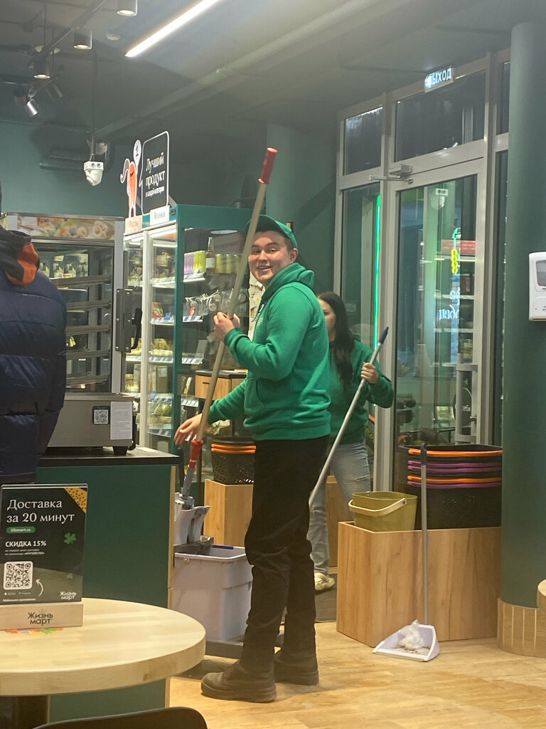 Отличная точка жизньмарта, всегда чисто, большой ассортимент, приятные сотрудники и вкусная готовая еда, десерты, кофе, матча, азиатская и паназиатская кухня.