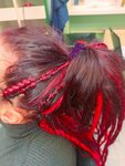 Сделали окрашивание , перед плетением афрозатылка. Очень удачно попали в цвет. Цвет насыщенный и яркий. Покрасили безаммиачной краской, сенсейшн эстель. Я довольна, благодарю Олю и Виолетту Мне сняли афрокосы, сделали пилинг, массаж головы, и покрасили. Все что я просила и даже больше