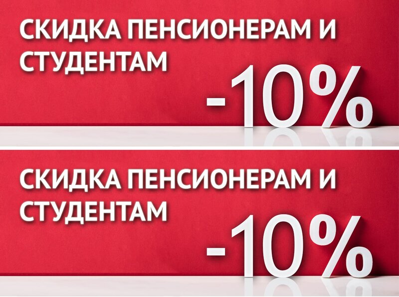 Рады сообщить Вам, что у нас появилась система скидок в размере 10 % пенсионерам и студентам при придъявлении удостоверения. Ждем студентов ...