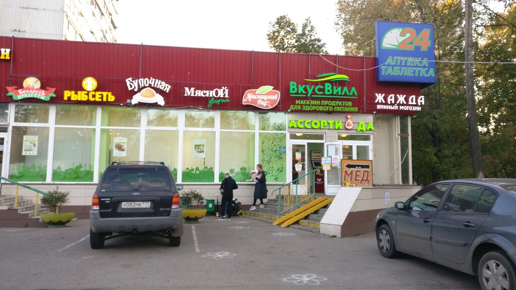 Несколько магазинов и прилавков в одном месте. ВкусВилл, Каравай СВ, Мясной ряд, сухофрукты и орехи, алкогольный отдел, прилавок с сырым мясом и изделиями и ещё пара прилавков с продуктами питания. Был хороший прилавок Белорусских продуктов, но съехал. В мясной лавки продали подтухшие ножки индейки. Вернули со скандалом. Будьте внимательны.