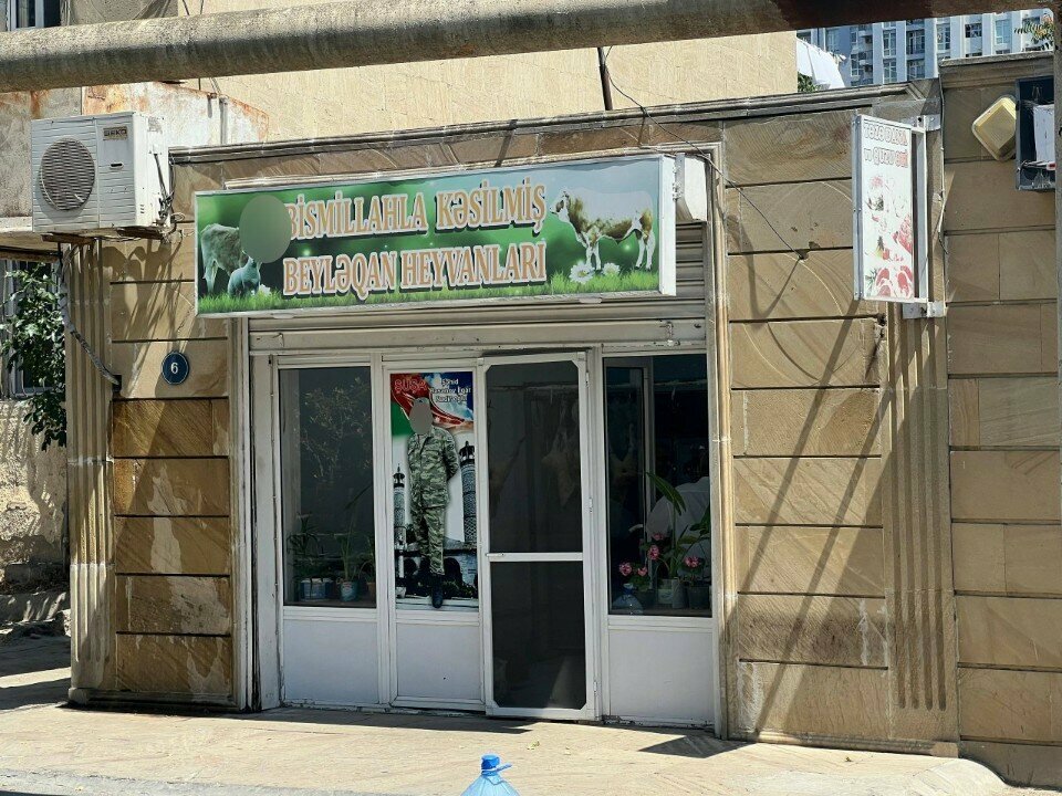 Butcher shop Bismillahla kəsilmiş beyləqan heyvanları, Baku, photo