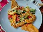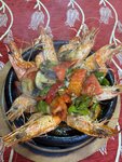 Very friendly and good-natured host. We had a nice chat in a mixture of languages. I liked the food, I took some kind of dish in a pot of vegetables and shrimp. We were treated to tea for free at parting. The view is interesting, you sit and look at passers-by :)