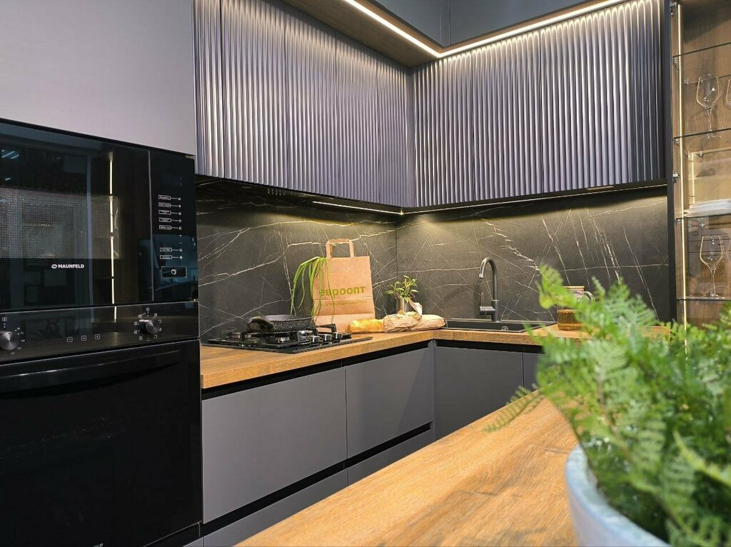 We ordered a kitchen from the Interio. We've been using it for a year. The quality is excellent. The kitchen is as good as new. Installed in Khrushchev 6 kv2. In a small area, it turned out to be a compact, well-thought-out, very comfortable kitchen. We contacted several furniture stores. And it was only in the Interio that we were able to place everything we needed in a small area. The result is a stylish, modern solution. Thank you. Good luck and prosperity!